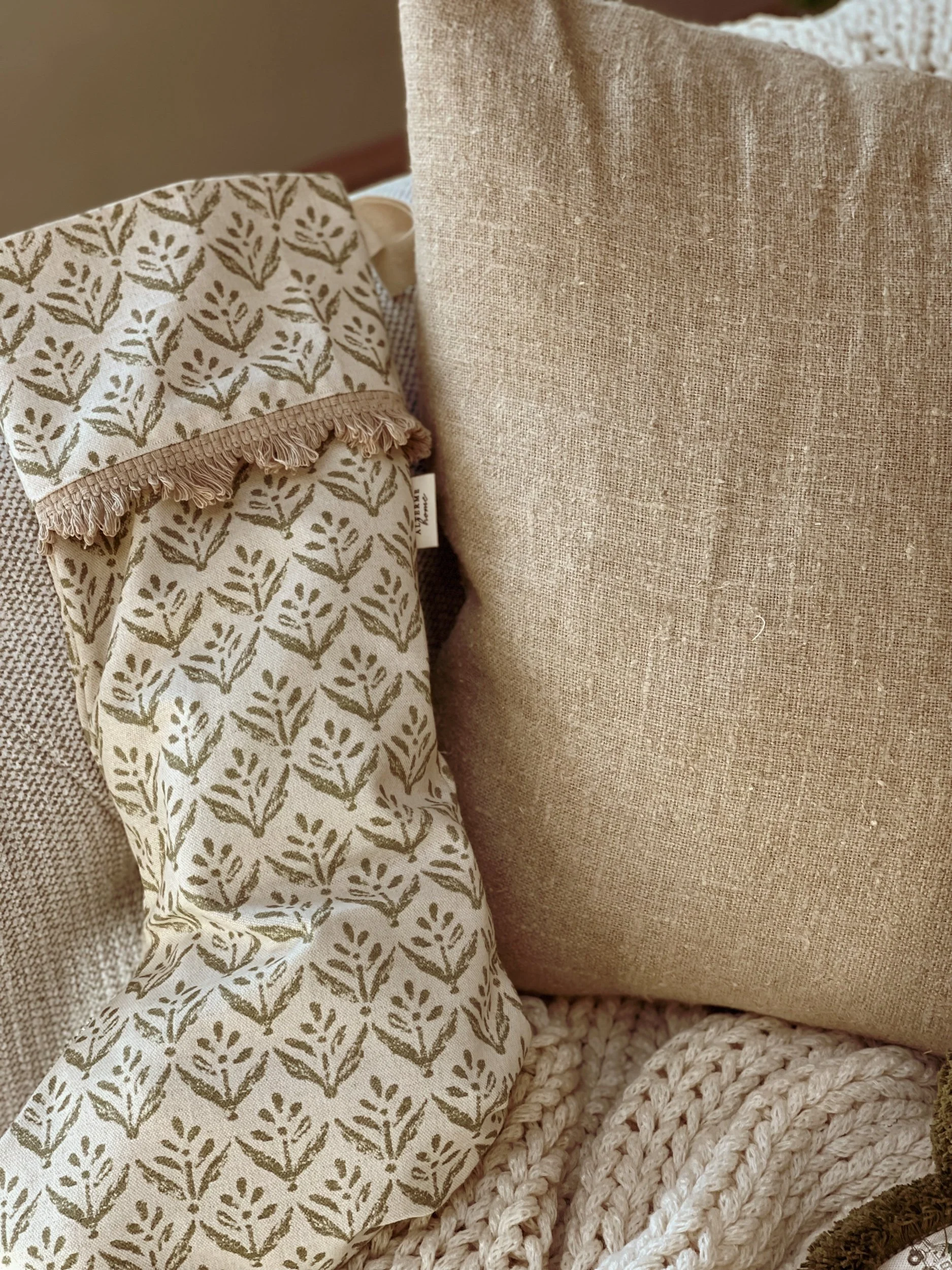 Decorative handmade stocking - Burford Block Print with Fan Edge Trim